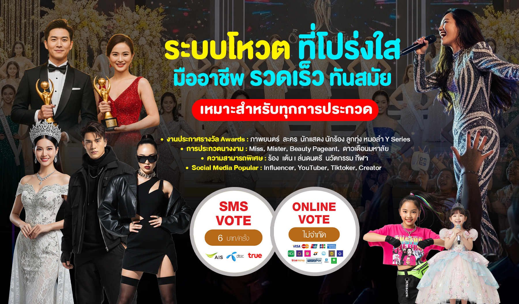 ระบบโหวตที่ผสานการโหวตมาตราฐานทุกรูปแบบ พร้อมสำหรับทุกงานกิจกรรมโหวต โหวตประกวดต่างๆ โหวตดารา โหวตนักแสดง โหวตวงดนตรี โหวตนักร้อง โหวตนางงาม โหวตมิสแกรนด์ โหวตมิสยูนิเวอร์ส โหวตมิสเวิลด์ โหวตมิสทีน โหวตเดอะสตาร์ โหวตAF โหวตงานประกาศรางวัล ใช้เครื่องมือโหวตดังนี้ เอสเอ็มเอสโหวต (SMS vote) ออนไลน์โหวต (Online vote) และอื่นๆ มีการรวมผลสรุปไว้ด้วยกันทุกช่องทาง ทำให้ทราบผลโหวตได้แบบเรียลไทม์ เกาะติดผลโหวตได้ทันที